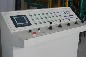 PLC eta ukipen-pantaila Siemens-en (Alemania) produktuak dira. Kontrol-kabinete elektroniko batek blokeak egiteko makina eta pilatzailea kontrolatzen ditu, eta horrek errazten du funtzionatzea eta hutsegiteen diagnostikoa egitea.