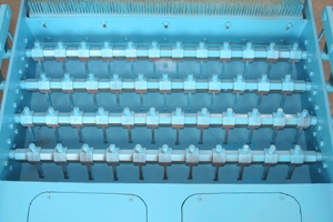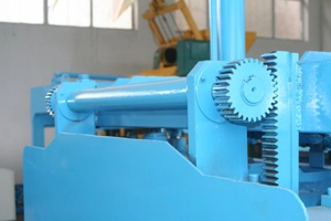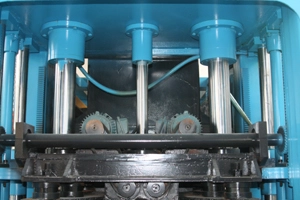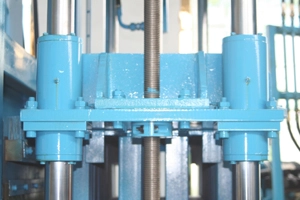 Goiko moldean zuhaitz zilindroak daude . Erdikoak altxatzeko abiadura ziurtatzen du eta bi aldeetako beste biek goiko moldearen presioa bermatzen dute.
