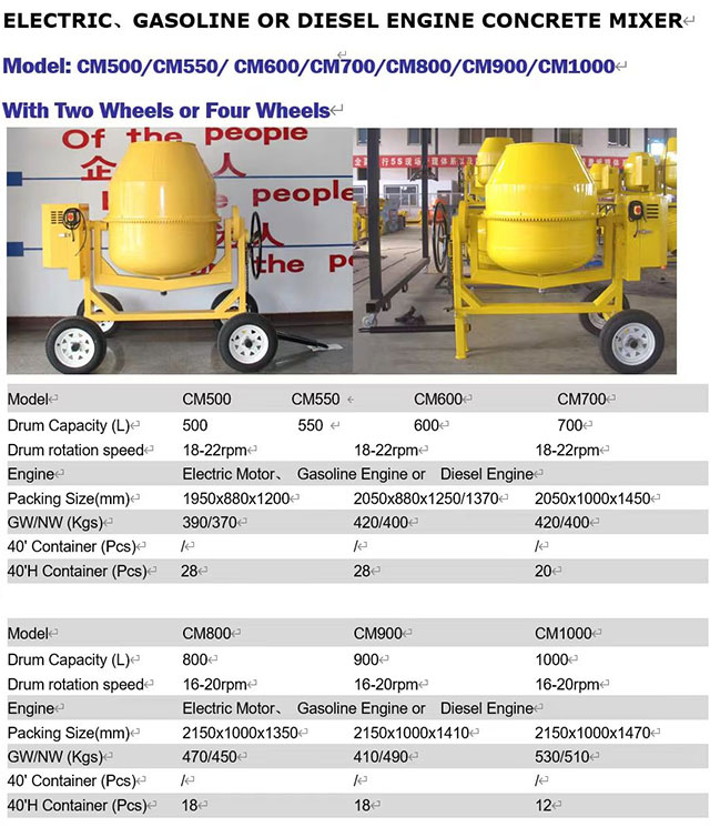 Proiektuen eskala desberdinetarako, ZCJK hormigoi nahasgailuak hainbat eredu eskaintzen ditu: 200L modelo txikia landa-etxe auto-eraikietarako, patioa gogortzeko eta beste eszenatoki batzuetarako egokia da, malgua eta mugikorra; 500 eredu ertaina udal errepideen mantentze-lanetarako, komunitate-eraikuntzarako eta bestelako proiektuetarako egokia da, eraginkortasuna eta mugikortasuna orekatuz; 1000L eredu handia eskala handiko proiektuetarako egokia da, hala nola, fabrika handien eraikuntzarako eta zubien eraikuntzarako, ekoizpen handiko nahasketa beharrak asetzeko. Horrez gain, danborraren ahalmena, motorraren potentzia, deskarga modua eta beste behar bereziak nahasteko pertsonalizatzea onartzen du, "eskariaren arabera pertsonalizatua, eszena egokitzea" benetan lortzeko.